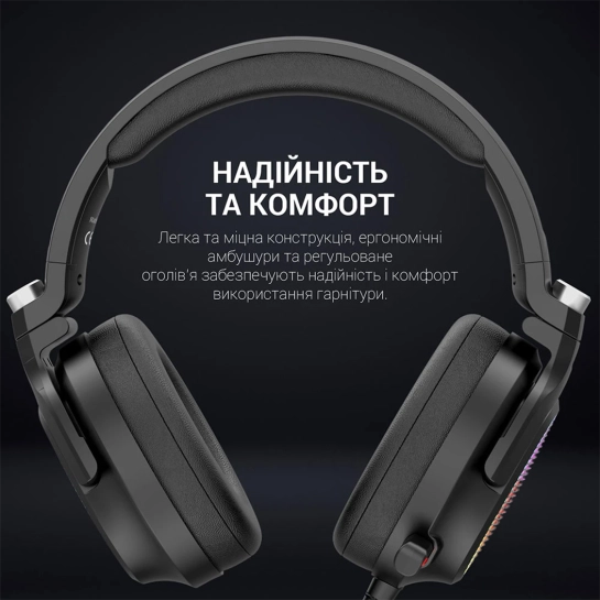 GamePro HS1050 розроблені з урахуванням комфорту навіть за тривалого використання. Амбушюри навушників м'які та м'яко охоплюють вуха, забезпечуючи зручну посадку та мінімізуючи тиск. Регульоване оголов'я дозволяє налаштувати навушники під будь-який розмір голови, забезпечуючи максимальний комфорт. Навіть у найтриваліших ігрових сесіях ви не відчуватимете втоми чи дискомфорту, що дозволяє повністю зосередитися на грі. Легка конструкція та продуманий дизайн роблять ці навушники ідеальним вибором для геймерів, які проводять багато годин за грою, не втрачаючи у зручності та якості звуку.