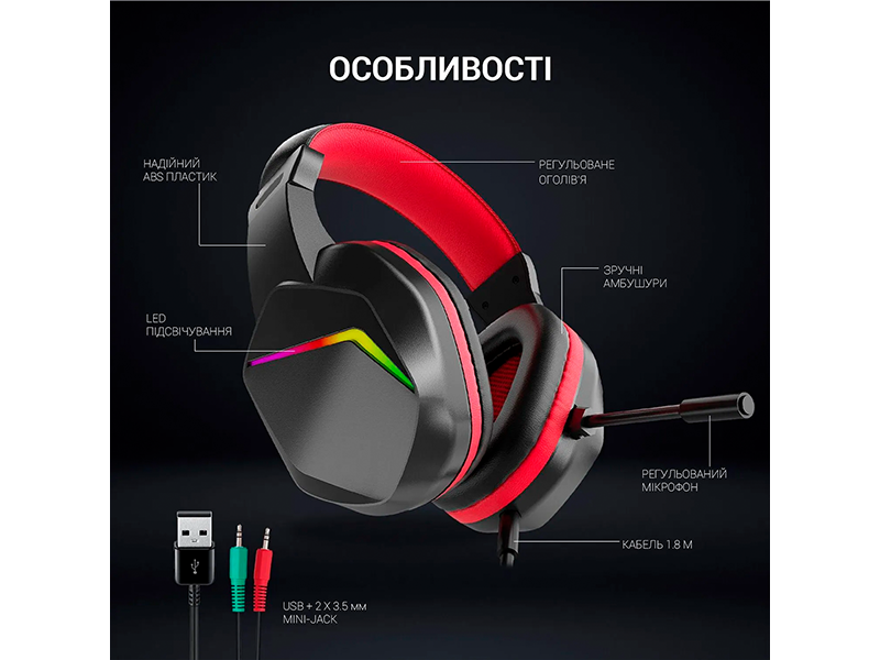 Конструкція навушників передбачає повнорозмірні амбушюри з м'якими подушечками, що забезпечують комфорт навіть під час тривалих ігрових сесій, дозволяючи підібрати оптимальну посадку для будь-якого користувача.