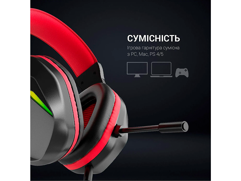 Гарнітура оснащена регульованим мікрофоном, який забезпечує чітку передачу голосу під час командних ігор або спілкування з друзями.