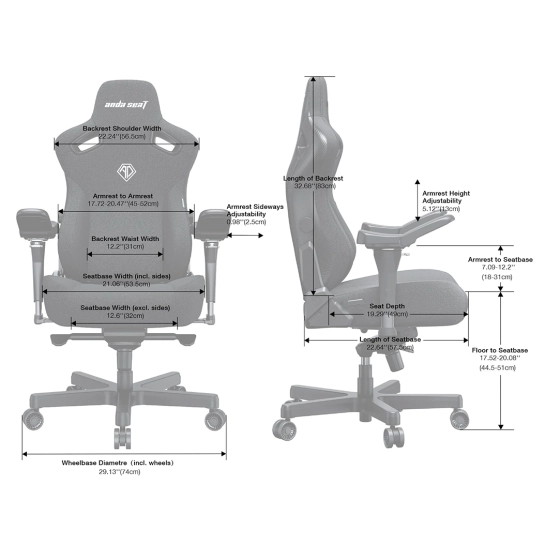 Характеристики для Ігрове крісло Anda Seat Kaiser 3 Pro XL Black Fabric