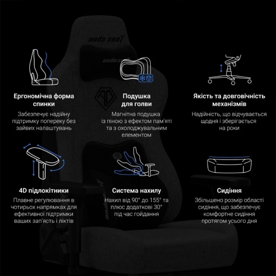 Опис Ігрове крісло Anda Seat Kaiser 3E XL Grey Fabric