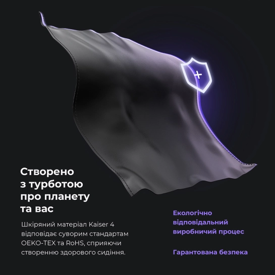 Високоякісна інноваційна синтетична шкіра стійка до плям і легко очищається, а також має довговічність та еко-відповідність стандартам OEKO-TEX та RoHS. Таким чином, ви можете швидко прибрати розлиту каву, крихти від закусок або сліди від домашніх тварин за допомогою вологої серветки.