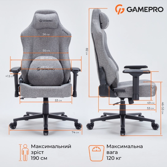 Характеристики для Ігрове крісло GamePro FGC750DG Fabric Dark Gray