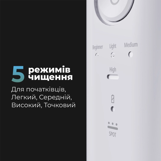 Вирушайте в подорож по 5 різних режимах використання іригатора - початковий, легкий, середній, високий та точковий. AENO DI2 створений для задоволення будь-яких потреб - чи це перші кроки у використанні іригатора, або використання досвідченими користувачами, яким потрібне потужне та цілеспрямоване чищення. Спеціально розроблений для тих, хто тільки починає користуватися іригатором, режим 'Початковий' забезпечує м'яку дію, дозволяючи користувачам поступово звикнути до процесу, забезпечуючи комфорт та легкість при переході до цієї революційної процедури догляду за ротовою порожниною.