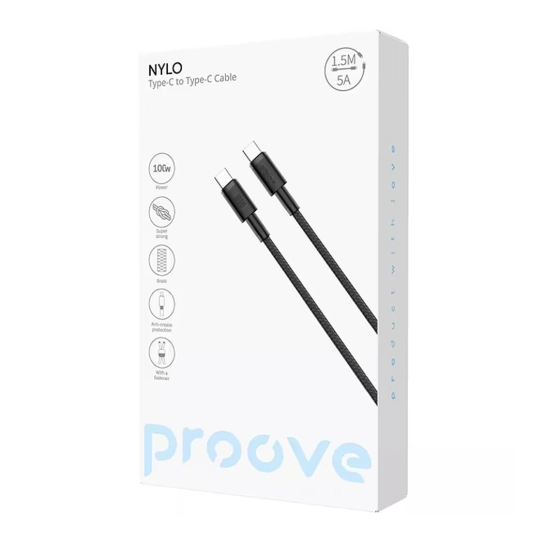 Опис Кабель Proove Nylo Type-C to Type-C 100W (1.5m) Black