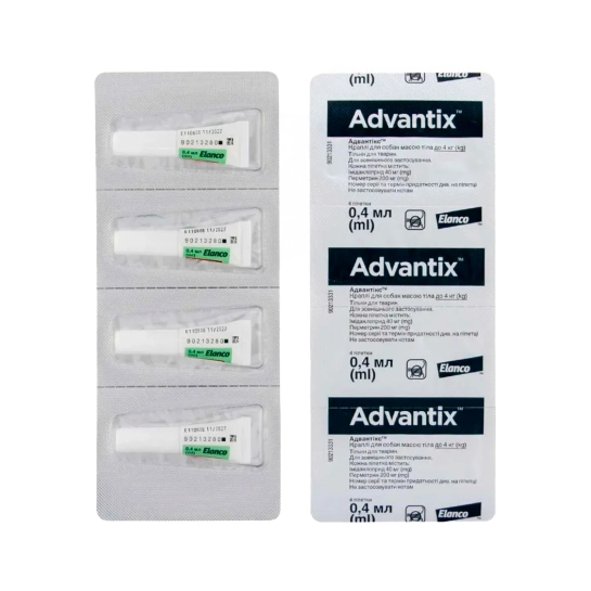 Опис Краплі на загривку для собак Bayer Advantix для собак менше 4 кг (4 шт. по 0,4 мл) (54169)