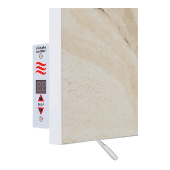 Поверхня панелі виконана з міцної кераміки з елегантними мармуровими розцвітками, завдяки чому обігрівач стає частиною інтер’єру. Ультратонка конструкція гармонійно виглядає в будь-якому приміщенні і не привертає зайвої уваги. Пристрій працює повністю безшумно, не спалює кисень, не створює запахів і підходить для людей з чутливістю до пилу чи алергенів.