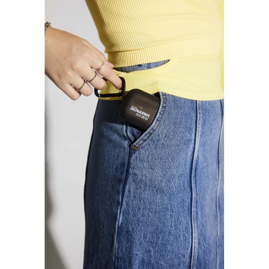 Захисний дизайнерський чохол для ваших AirPods Pro 2 з напівпрозорим зовнішнім екраном та індивідуальним карабіном SKRM.