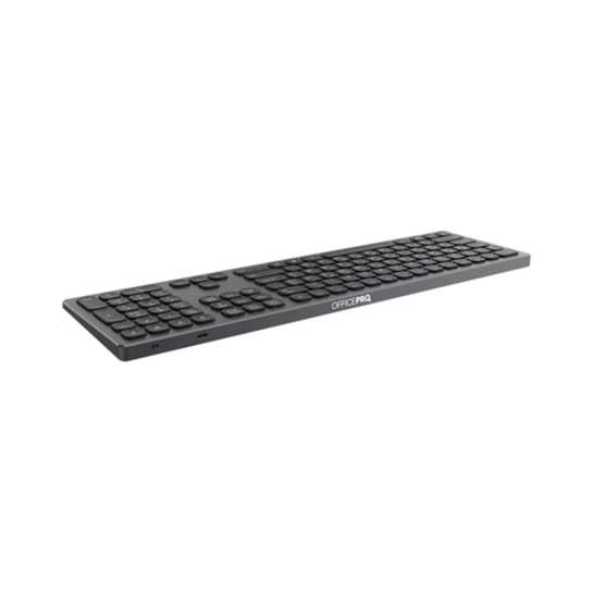 Клавіатура OfficePro SK1550 оснащена класичною розкладкою з цифровим блоком та тихими ножичними клавішами, забезпечуючи комфортну та майже безшумну роботу як в офісі, так і вдома.