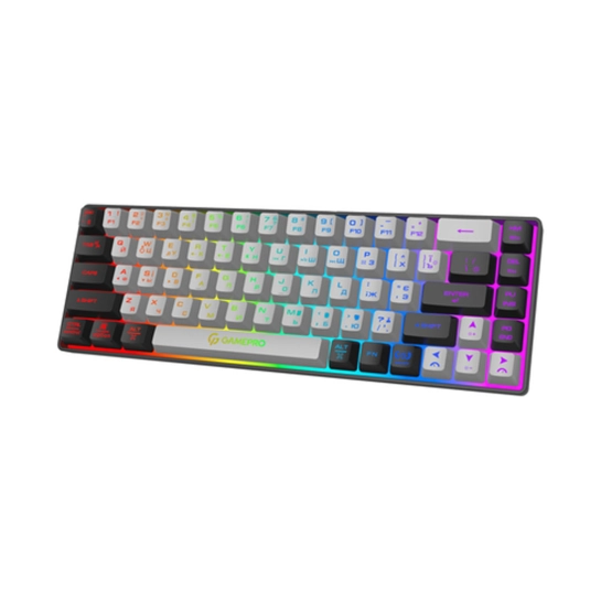 Бездротова клавіатура GamePro з 68-ма клавішами розроблена в компактному форматі без цифрового блоку — відмінний вибір для тих, хто цінує простір на робочому столі або часто працює в дорозі. Зручна розкладка включає ENG, RU та UKR символи.