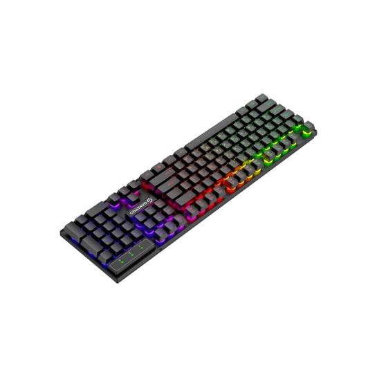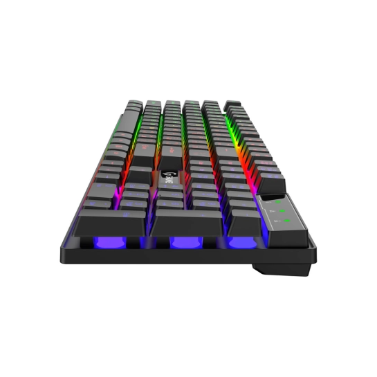 Клавіатура оснащена класичними острівними клавішами зі стандартним ходом та RGB-підсвічуванням, а також має зручний регулятор гучності. Підтримує ресурс натискання до 5 мільйонів разів.