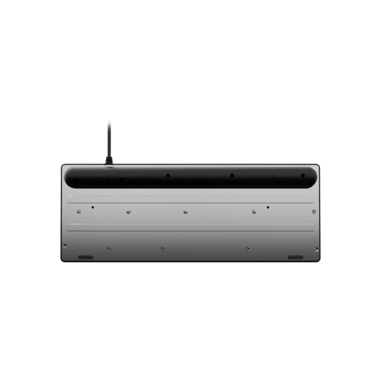 Ергономічна форма із вбудованою підставкою для зап'ясть забезпечує зручність при тривалому використанні. Чорний корпус, білі літери кирилиці та розміри 441×162×32 мм роблять клавіатуру практичною та стильною.