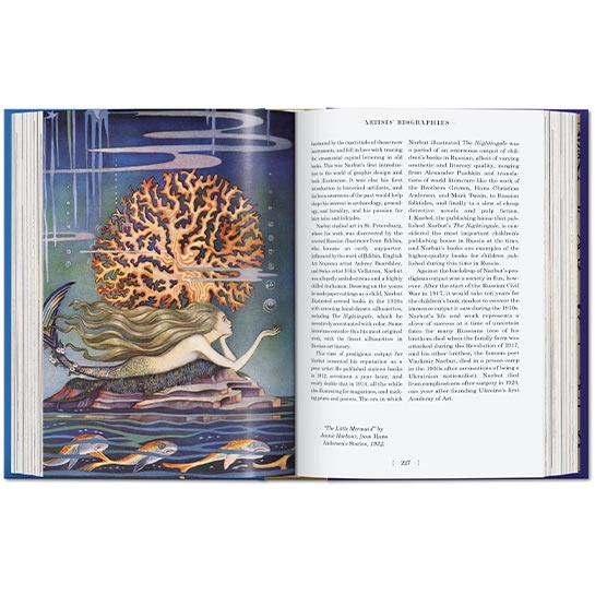 Казки Грімм і Андерсена надихали покоління художників, і кожна казка в цьому томі барвисто інтерпретована відомим ілюстратором: такі легенди, як Кей Нільсен (провідний представник Золотого століття ілюстрації, що закінчилося в 1920-х роках), Майстри мистецтв і ремесел Уолтер Крейн, Артур Рекхема і швейцарський комерційний художник Герберт Леупен. Поруч представлені силуети з історичних публікацій, а також нові віньєтки, створені спеціально для цього видання, які танцюють на сторінках в хитромудрій грі тіней. Вступні есе, про казки братів Грімм, відображених в мистецтві, і про Андерсена, як серце і душу сучасної казки, доповнюють ці польоти фантазії, так само як і нам інформацію про те кожної казки і біографій художників.