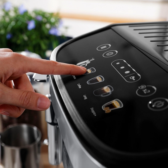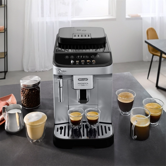 Немає більш простого і зручного способу заварити філіжанку кави, ніж зробити це в кавомашині або кавоварці. Імовірно, саме тому ви зараз і опинилися на цій сторінці – щоб купити кавоварку DeLonghi ECAM 290.31 SB Magnifica Evo, яка практично ідеально підходить для використання з цією метою у повсякденному побуті. Проста, якщо порівнювати з елітними моделями, але все ж таки оснащена модним і дуже зручним сенсорним пультом управління, безумовно красива, надійна і практична. Це ваш оптимальний вибір за співвідношенням ціни та якості для використання вдома чи в офісі.