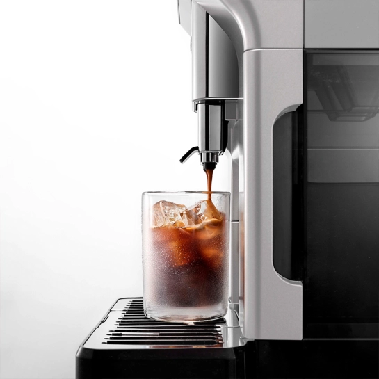 Так, ви можете приготувати класичні молочні коктейлі на основі еспресо з додаванням молока, збитого в пінку. Лате, капучино, макіяж доступні так само через меню. Потрібно лише підключити автоматичний капучинатор. Щільність пінки визначається за допомогою механічного поворотного перемикача. Крім того, саме для даної системи передбачено і окремий контейнер для приготування холодних молочних коктейлів, що є унікальною особливістю кавоварки, що виділяє її серед аналогічних моделей бренду.