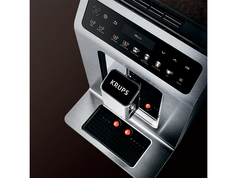 Krups не має ручного обслуговування. Промивання виконується за запитом вашої машини, чим забезпечується оптимальний рівень гігієни завдяки високотемпературним процесам, які ідеально видаляють кавову олію та залишки вичавків, не пошкоджуючи машину та заощаджують ваш час.