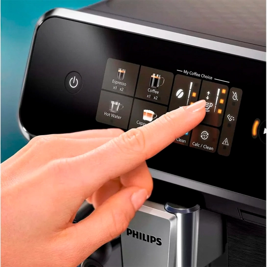 Легко вибирайте улюблені напої за допомогою сучасного сенсорного екрану з кольоровими піктограмами. Налаштуйте каву відповідно до своїх уподобань за допомогою функції "Моя кава": виберіть міцність кави, кількість кави та бажану ступінь молочної пінки.
