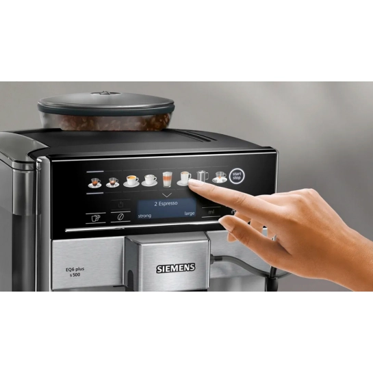 Повнокольоровий зручний дисплей перетворює приготування кави на задоволення. Дисплей coffeeSelect забезпечує інтуїтивно зрозуміле керування. Кожен вид кави з першого погляду обраний одним дотиком. Ось як легко варити каву – із повністю автоматичною кавомашиною Siemens.