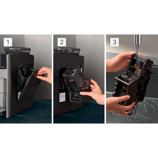 Для гігієнічного очищення блок заварювання легко зняти і промити під проточною водою. Це забезпечує стабільний смак та продовжує термін експлуатації. Таким чином, ви можете насолоджуватися чистим смаком та ароматом найкращого кавового напою.