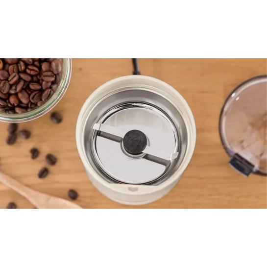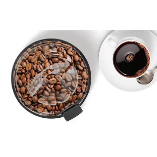 Увімкнути пристрій легко: для цього потрібно закрити кришку та натиснути на неї. За один цикл можна перемолоти до 75 г зерен кави, що становить майже 10 чайних ложок.