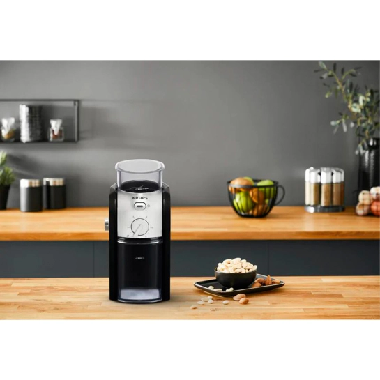 Кавомолка KRUPS забезпечує оптимальну перемолотку для всіх методів заварювання кави та дозволяє насолоджуватися багатим ароматом кави. Ця електрична кавомолка пропонує 17 ступенів перемелювання для забезпечення ідеально перемеленої кави для вашого улюбленого методу заварювання, а можливість вказати кількість порцій гарантує, що буде перемелено стільки кави, скільки вам потрібно.