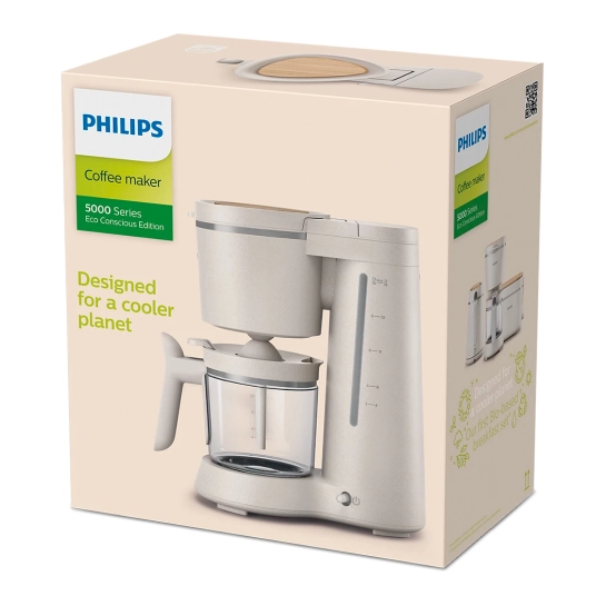 Дизайн, натхненний природою, зі спокійним кольором та натуральними матеріалами. В комплект входять знімна кришка та скляний глечик – обидва компоненти зручні у використанні та чищенні. Колекція Philips Eco Conscious у 2022 році була удостоєна нагород IF Design Award та Red Dot.