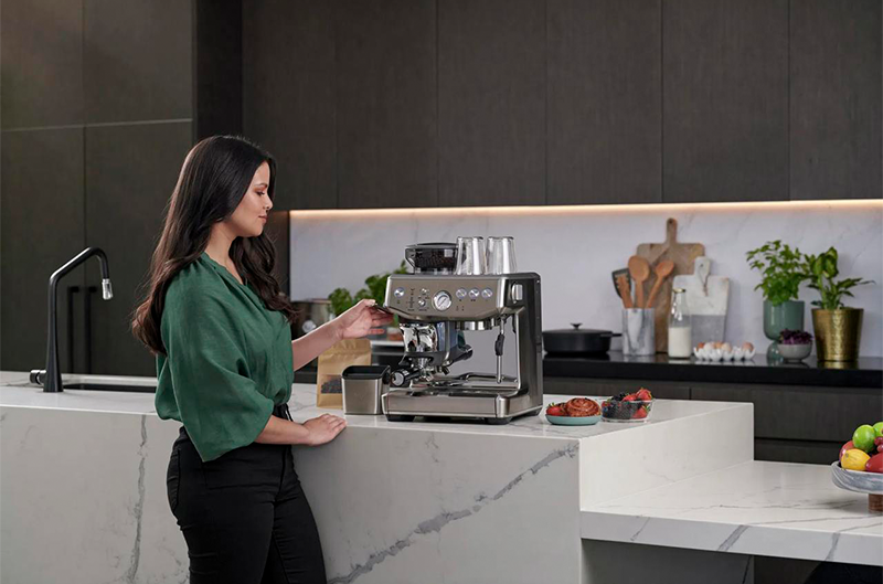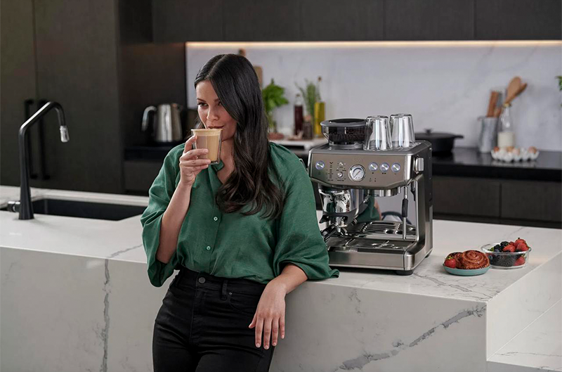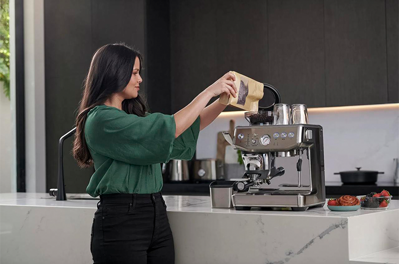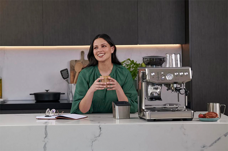 Від кавових зерен до ідеального еспресо за хвилину. Нова кавомашина Barista Express із системою Impress Puck для завжди ідеального дозування та пресування кави. Менше безладдя та чашка кави, яка справляє ідеальне враження.