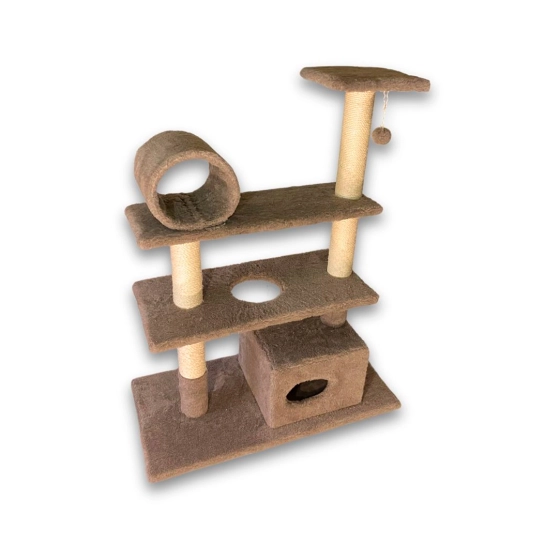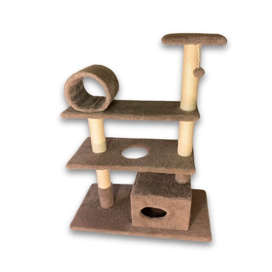 Третій ярус закріплений на двох стовпчиках і пропонує улюбленцям широкий вибір розваг: застрибування на майданчик, гра з підвіскою на шнурку, гра в хованки в барабані, обшитому штучним хутром.