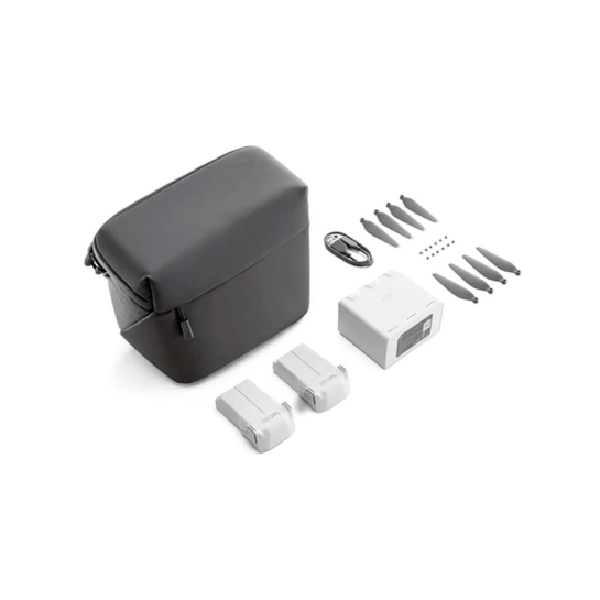 У комплект DJI Mini 3 Pro Fly More входять дві батареї Intelligent Flight, концентратор для двосторонньої зарядки, кабель для передачі даних, сумка наплічна, запасні пропелери та гвинти, що забезпечують всебічну підтримку при аерофотозйомці, за вигіднішою ціною, ніж покупка окремо.