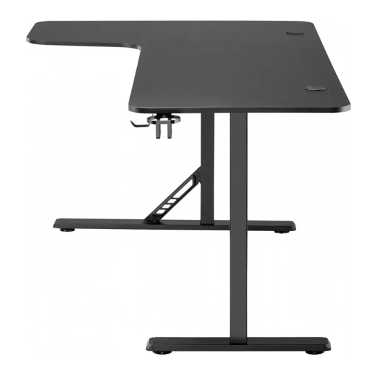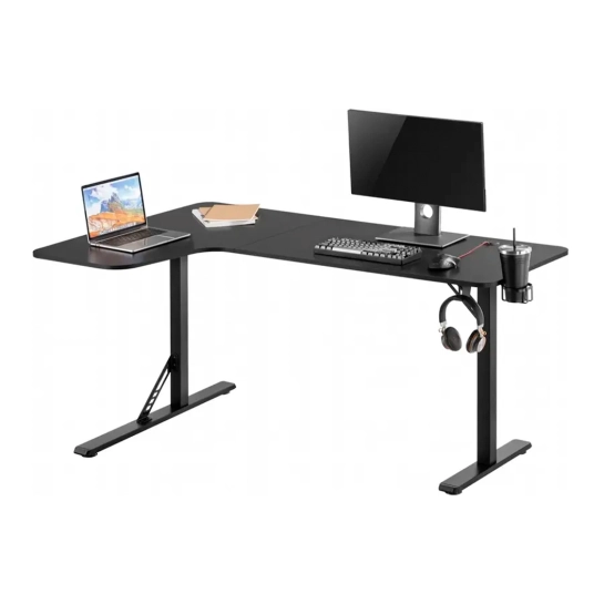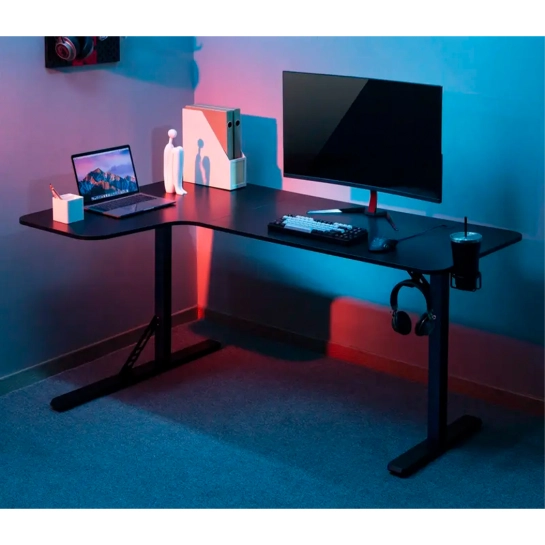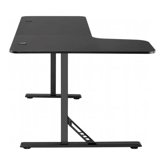 Чорний колір та мінімалістичний стиль роблять цей стіл чудовим доповненням до будь-якого інтер'єру, будь то ігрова кімната, офіс чи домашній кабінет. Кутова форма дозволяє раціонально використовувати простір, створюючи зручну та ергономічну робочу зону.
