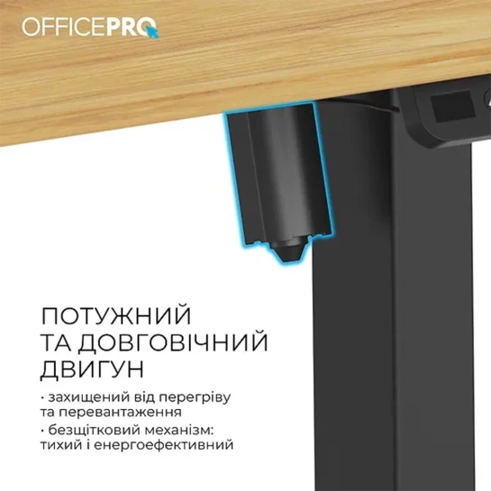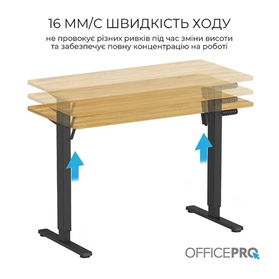 Однією з ключових особливостей столу OfficePro ODE1260W є регулювання висоти, що дозволяє налаштувати його під ваші індивідуальні уподобання. Діапазон висоти варіюється від 71 см до 116 см, що дозволяє вибирати оптимальне положення для роботи чи гри. Завдяки механізму, що забезпечує підйом зі швидкістю 16 мм/сек, регулювання висоти відбувається швидко і легко. Це ідеальний варіант для людей, які цінують комфорт та гнучкість під час проведення ігрових сесій або роботи за комп'ютером. Зручність регулювання дозволяє використовувати стіл як для сидячої, так і для стоячої роботи, покращуючи поставу та знижуючи навантаження на спину.