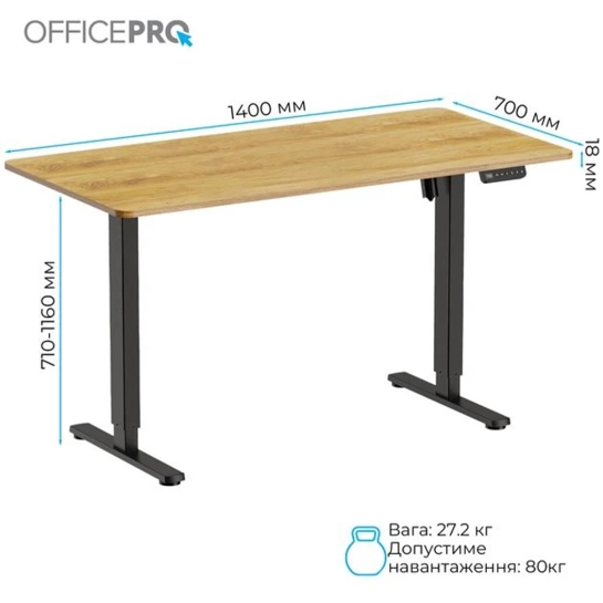 Характеристики для Комп'ютерний стіл із регулюванням висоти OfficePro ODE1470LWW Light Wood/White