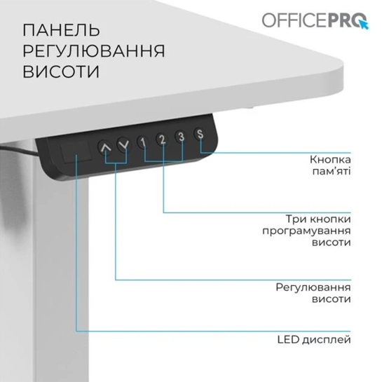 Стіл OfficePro має продуманий ергономічний дизайн, а також дозволяє налаштувати комфортну висоту стільниці. Це особливо важливо для людей, які проводять багато часу за комп'ютером та прагнуть покращити комфорт своєї робочої зони.
