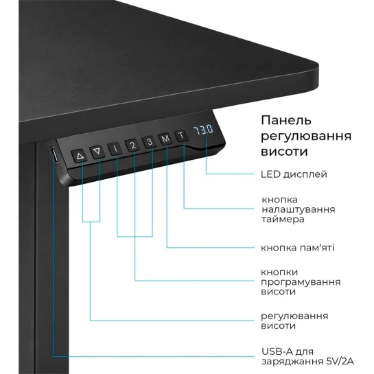 Стіл OfficePro має продуманий ергономічний дизайн, а також дозволяє налаштувати комфортну висоту стільниці. Це особливо важливо для людей, які проводять багато часу за комп'ютером та прагнуть покращити комфорт своєї робочої зони.