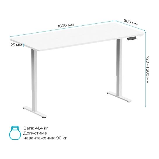 Характеристики для Комп'ютерний стіл із регулюванням висоти OfficePro ODE1880W