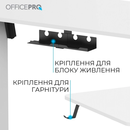 Стіл OfficePro має продуманий ергономічний дизайн, а також дозволяє налаштувати комфортну висоту стільниці. Це особливо важливо для людей, які проводять багато часу за комп'ютером та прагнуть покращити комфорт своєї робочої зони.