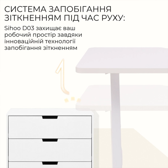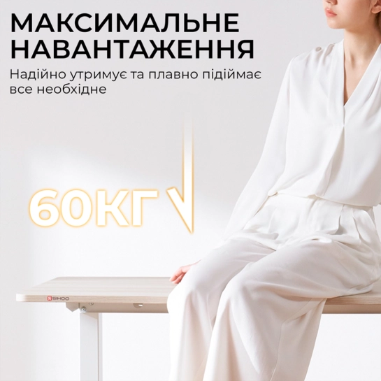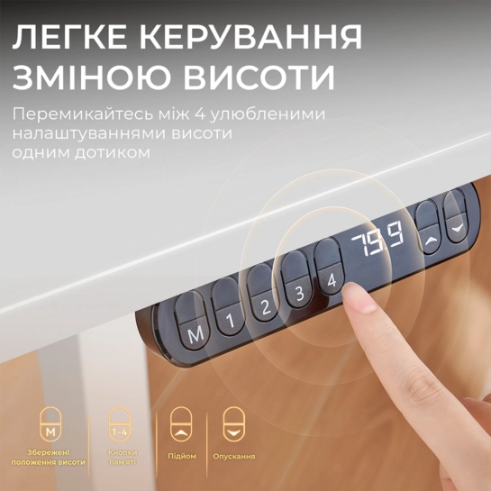 Стіл Sihoo D03 – це сучасний стіл з електрорегулюванням висоти, який дозволяє легко перемикатися між сидінням та стоянням протягом робочого дня. Він плавно регулює висоту від 72 см до 120 см за допомогою тихого безщіткового двигуна, сприяючи кращому самопочуттю та продуктивності. Містка стільниця розміром 140×70 см, виготовлена із міцної плити товщиною 18 мм, забезпечує багато місця для моніторів, ноутбука та інших робочих інструментів. Надійна конструкція з подвійною балкою забезпечує виняткову стійкість, витримуючи вагу до 60 кг без хиткості на будь-якій висоті. Важливим елементом безпеки є технологія захисту від зіткнень, яка автоматично зупиняє та відводить стіл, якщо перешкоджає руху. Під час роботи стіл видає менше 50 дБ шуму, що створює спокійне середовище без звуків, що відволікають. Крім того, за допомогою зручної панелі керування можна зберегти до чотирьох налаштувань висоти пам'яті для миттєвого перемикання між улюбленими положеннями однією кнопкою. Складання столу проста і займає менше 20 хвилин, що дозволяє швидко розпочати роботу.