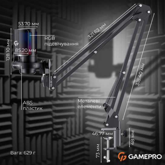 Опис Конденсаторний мікрофон із пантографом GamePro (UGM145B)