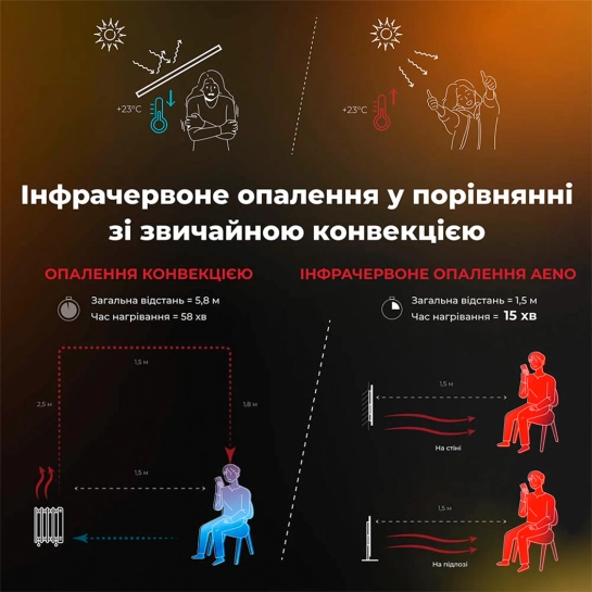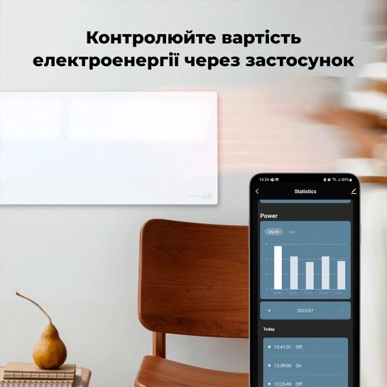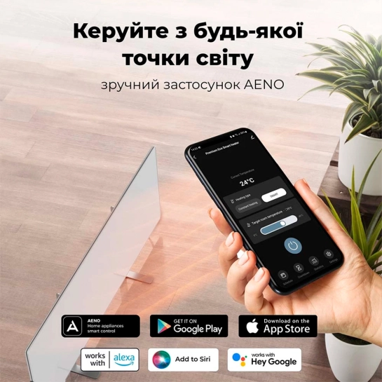 Мобільний додаток AENO дозволить налаштувати час, встановити температуру опалення приміщення, контролювати витрати електроенергії.