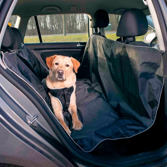 Для захисту сидіння автомобіля, в якому транспортується собака, від забруднень, пошкоджень та залишків вовни, використовується килимок захисний в авто нейлон чорний 1,45*1,60м, представлений відомим німецьким виробником зоотоварів Тріксі.
