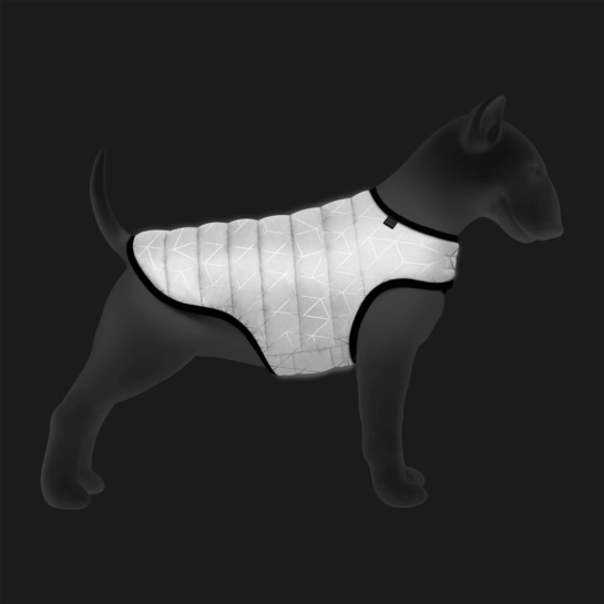 Куртка-накидка м'яка та тепла, легко відкривається та регулюється на липучці. Має стильний дизайн і просто одягається на собаку. Всі зрізи окантовані гумкою зі світловідбиваючою смугою, що підвищує видимість вихованця у темний час доби.