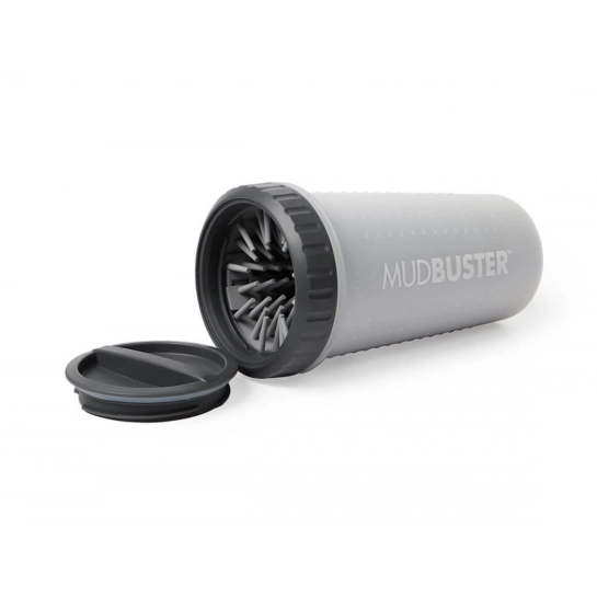 Усередині зручної склянки розташовані м'які та щільні силіконові щетинки, розроблені для дбайливого очищення лап собаки. Відмінно підходить для прогулянок у парку, пробіжок, походів чи ігор на свіжому повітрі за будь-якої погоди. MudBuster – оригінальний запатентований продукт: патент № D799,126.