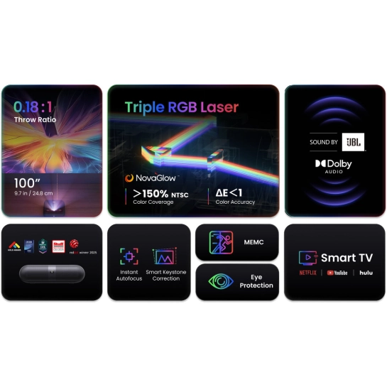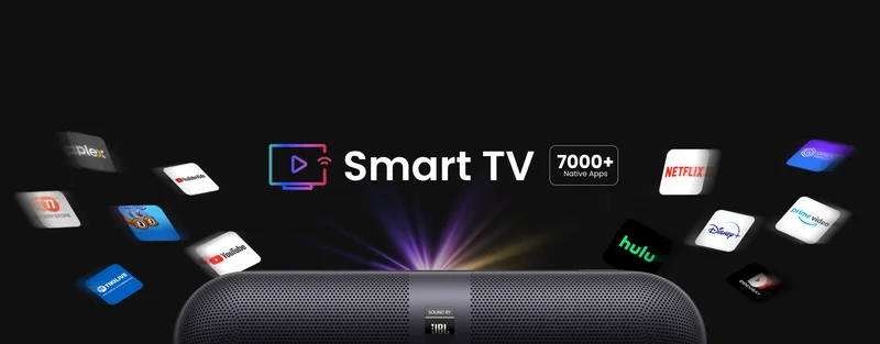 Насолоджуйтесь смарт-телевізором з лазерним проєктором та понад 7000 вбудованих додатків, включаючи YouTube, Netflix, Prime Video та Disney+, які пропонують весь улюблений контент.