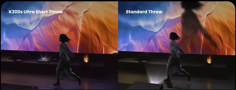 Завдяки надзвичайно короткій фокусній відстані 0,18:1, K300s перетворює навіть найменші приміщення на особистий кінотеатр, проєктуючи величезний 100-дюймовий екран з відстані всього 24,8 см (9,76 дюйма).