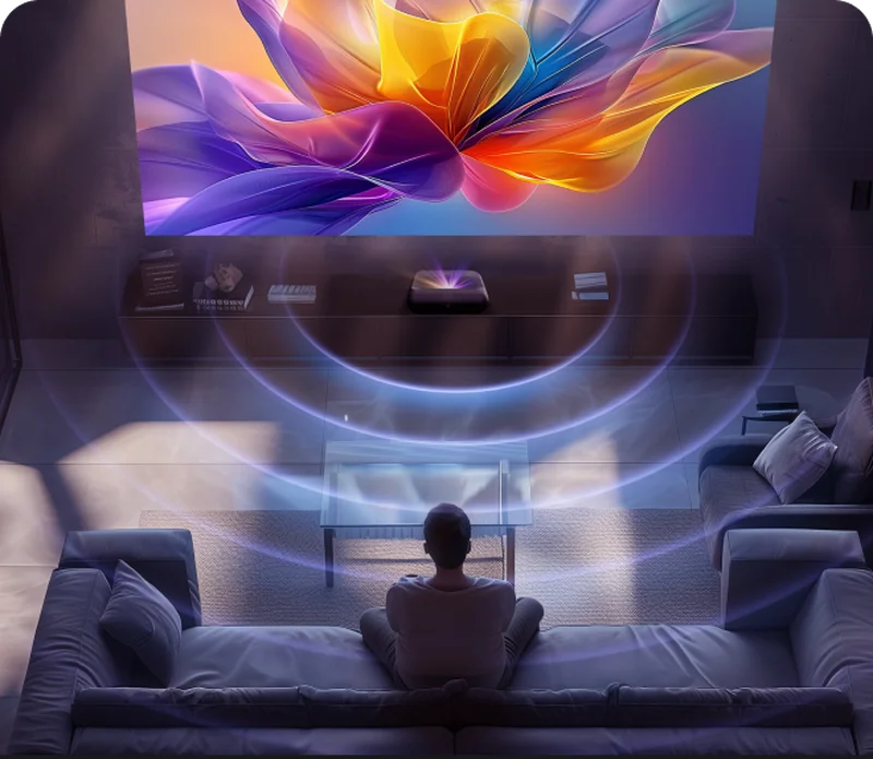 Лазерний проєктор для домашнього кінотеатру Yaber K300s оснащений технологією Triple RGB Laser, що забезпечує широку колірну гаму 150% NTSC для яскравих і насичених кольорів. Завдяки високому коефіцієнту контрастності 1500:1, він забезпечує виняткову глибину і деталізацію зображення.