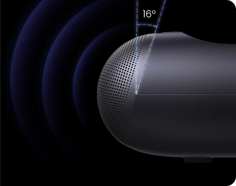 Динаміки нахилені вгору під кутом 16° для оптимального спрямування звуку в бік аудиторії, подалі від потенційних перешкод..