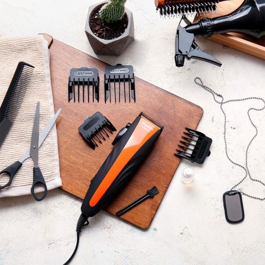 Машинка для стрижки волосся Magio MG-581 дозволяє не тільки заощаджувати свій час, уникаючи черг та попередніх записів до перукаря, але й ніколи не коригувати свою стрижку. Такий аксесуар буде просто незамінним для тих людей, які прагнуть виглядати бездоганно. Вона виконана у стильному дизайні та проста у використанні. Потужний, але тихий двигун працює якісно і без вібрацій. Леза з титановим покриттям дозволяють машинці добре справлятися із завданням. Ергономічний черешок машинки добре лягає в руці, що дозволяє комфортно працювати. Закруглені леза та гребені плавно ковзають по шкірі, не дряпаючи її, щоб кожна стрижка була безпечною та приємною. Леза після використання можна чистити за допомогою щіточки. У наборі цієї моделі ви знайдете 4 гребеня, що дозволяють регулювати довжину волосся від 3 до 12 мм. Завдяки легкості та компактності ця сімейна машинка для стрижки волосся дуже зручна у використанні та підходить дорослим та дітям. У комплект також входять гребінець, ножиці та олія.