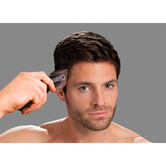 Машинка поєднує в собі потужний двигун Pro Power і сталеві леза, що самозаточуються. Має дві насадки із встановленням довжини від 1 до 42 мм, що дозволяє створити бажану стрижку.