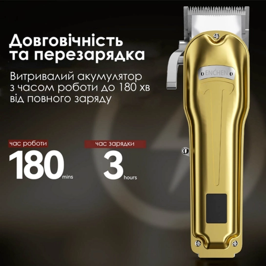 - Довговічний акумулятор: Літієвий акумулятор ємністю 2000 мА·год забезпечує до 180 хвилин безперервної роботи після повної зарядки, що дозволяє зручно користуватися машинкою протягом тривалого часу.