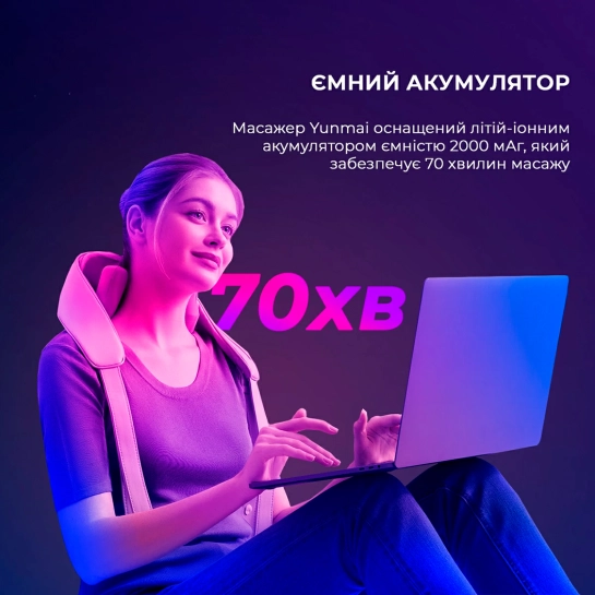 Попри свою назву масажер YUNMAI Neck Massager може розминати не тільки потиличну частину. Він легко надягає на ноги, руки і навіть поперек, знімаючи біль і напругу після важкого робочого дня, серйозних навантажень або застуди. Це ідеальне рішення для домашнього використання, у поїздці чи навіть в офісі. З ним ви завжди почуватиметеся бадьорими та повними сил, насолоджуючись професійним масажем, не виходячи з дому.